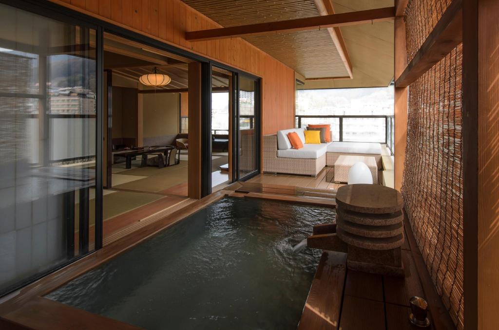 This suite features a hot tub and a private open-air bath. This spacious suite comes with 1 living room, 1 separate bedroom and 1 bathroom with a bath and free toiletries. This suite is air-conditioned and has a seating area with a flat-screen TV, tatami, a tea and coffee maker, executive lounge access, as well as a safe deposit box. The unit has 2 beds.