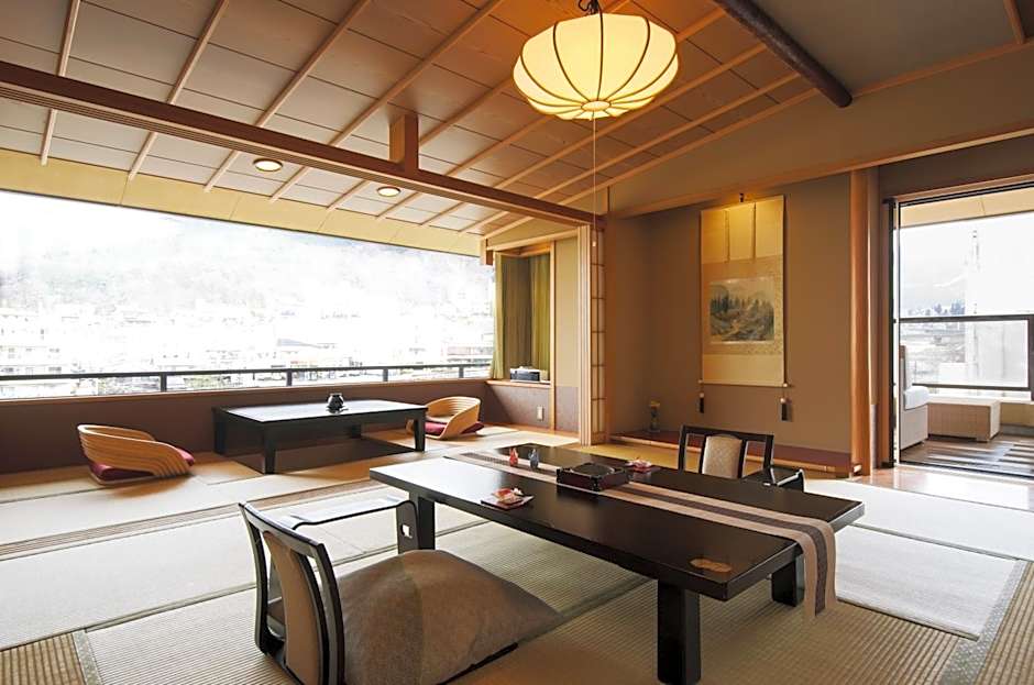 This property cranks up the comfort with a restaurant, free private parking, free Wifi, and free shuttle service. For unwinding, there’s a free hot spring bath, plus a sauna and hot tub, all under an air-conditioned roof. Other perks include a bar, sun deck, terrace, garden, river view, balcony, and bathtub, along with non-smoking rooms, an elevator, a 24-hour front desk, and on-site parking (free). Meeting/Banquet facilities are available for extra charges, and kids’ meals come with an extra charge.